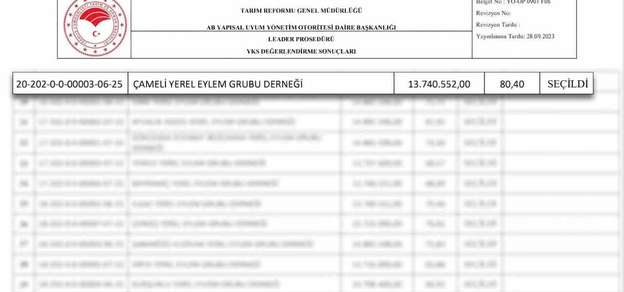 Çameli Yerel Eylem Grubu (ÇAMYEG) Başkanı Sayın Cengiz Arslan’ın öncülüğünde yürütülen çalışmalar, ilçemiz adına büyük bir başarının kapısını araladı. Çameli Belediyesi, Avrupa Birliği ve Türkiye Cumhuriyeti tarafından desteklenen, 2025-2030 yılları arasında uygulanacak IPARD III Programı M5 – Yerel Kalkınma Stratejilerinin Uygulanması (LEADER Yaklaşımı) kapsamında hazırlanan proje, yapılan değerlendirmede 80,40 puan alarak 13 milyon 740 bin 552 TL hibe desteği almaya hak kazandı.