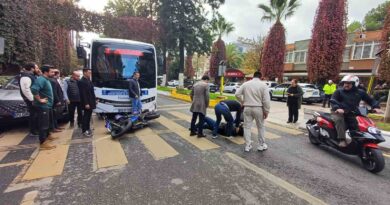 AYDIN’IN EFELER İLÇESİNDE YOLA ÇIKAN YAYA ÇARPMAMAK İÇİN DİREKSİYONU KIRAN MOTOSİKLETLİ SÜRÜCÜ, HALK OTOBÜSÜNE ÇARPARAK YARALANDI.