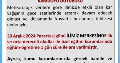 Devamını OkuUŞAK’TA YOĞUN KAR YAĞIŞI NEDENİYLE 30 ARALIK PAZARTESİ GÜNÜ OKULLAR TATİL EDİLİRKEN, ENGELLİ VE HAMİLE KAMU ÇALIŞANLARINA DA İDARİ İZİN VERİLDİ.