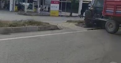 Refüjden yolun karşısına geçmek isteyen traktöre otomobil çarptı