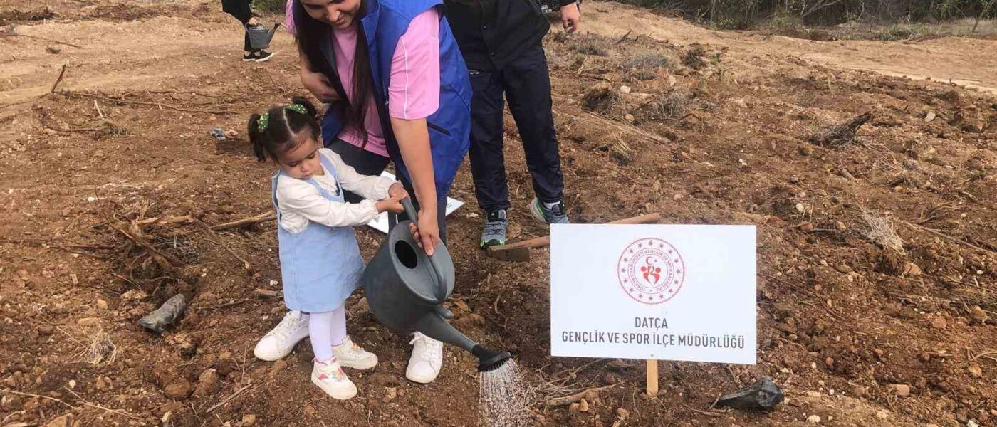 Muğla’nın Datça ilçesinde, 11 Kasım Milli Ağaçlandırma Günü dolayısıyla düzenlenen etkinlikte yüzlerce fidan toprakla buluşturuldu.