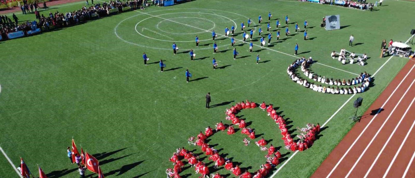 Gevher Nesibe Mesleki ve Teknik Anadolu Lisesi ve 75. Yıl Alime Paşa Ortaokulu öğrencileri bedenleri ile gösteriler kapsamında stada 102 ve Ayyıldız koreografisini çizdiler. Törende Kaymakam Fatih Bayram, Belediye Başkanı Erkan Kara ve Garnizon Komutanı Mly. Binbaşı Hüseyin Cihan Korkmaz tarafından 29 Ekim Cumhuriyet Bayramı dolayısıyla ilçede düzenlenen okullar arası yarışmalarda dereceye giren öğrencilere ödülleri verildi.