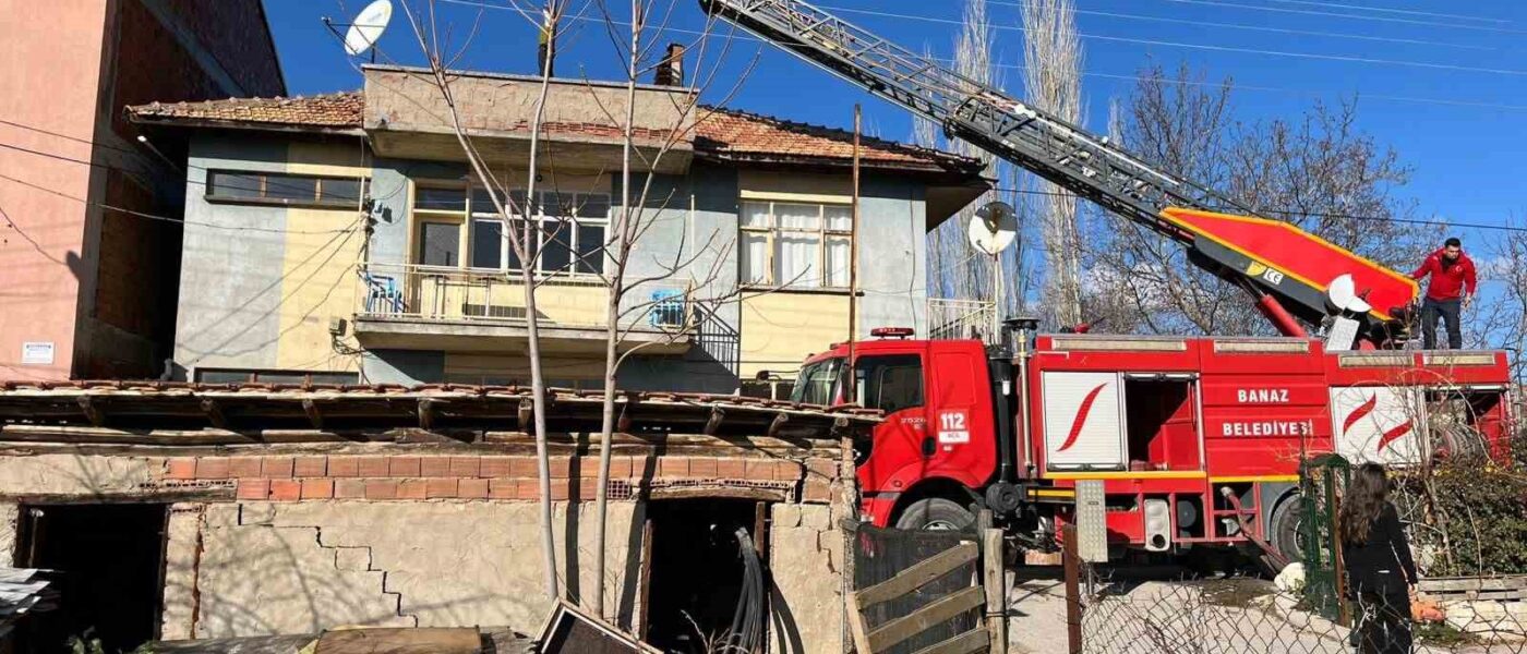 Uşak’ın Banaz ilçesinde 3 katlı evin çatısında meydana gelen yangın söndürüldü.